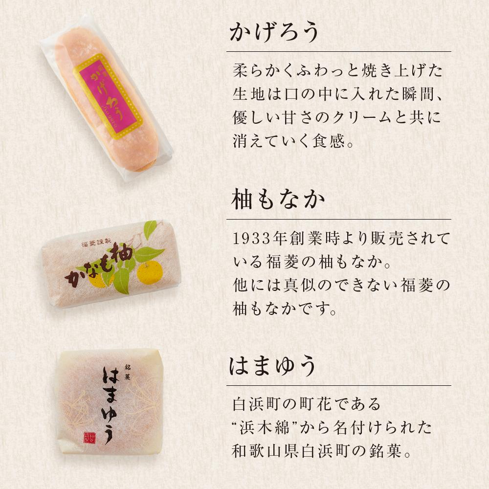 - 【ふるさと納税】和菓子お試しセット かげろう10個・柚もなか12個・はまゆう6個 福菱 | 白浜町 和菓子セット かげろう 柚もなか はまゆう 人気 おすすめ ご当地スイーツ 和歌山銘菓 ギフト 贈り物 お菓子セット お取り寄せ 送料無料 ふるさと納税