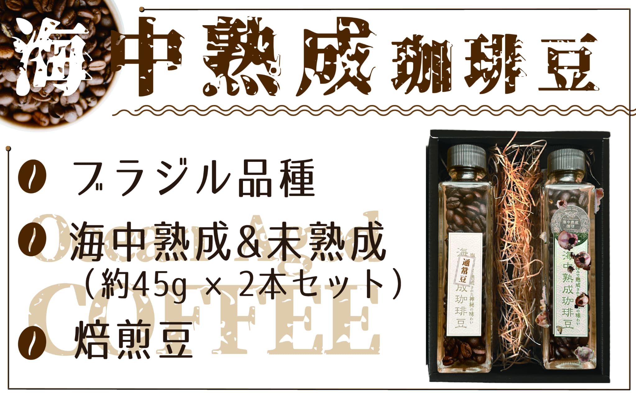 - 【ふるさと納税】希少 コーヒー好きの方向け!海で熟成させた 海中熟成 珈琲豆 飲み比べ セット 〈 焙煎コーヒー豆45g 熟成/熟成なし 各1瓶 〉[ コーヒー 飲料 飲み物 貴重 ブラジル ハイロースト 中深煎り 数量限定 2種 ギフト 贈答品 贈り物 プレゼント ぶらり気仙 ]