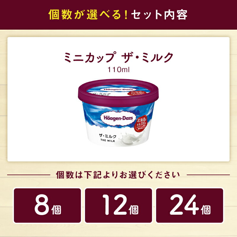 【ふるさと納税】【2026年2月25日より寄附金額見直し(値上げ)予定】個数が選べる ハーゲンダッツ ミニカップ セット ザ・ミルク 味 アイスクリーム アイス スイーツ デザート 人気 有名店 グルメ お菓子 おやつ ご褒美 高級 リッチ おすすめ 冷凍 北海道 浜中町 送料無料