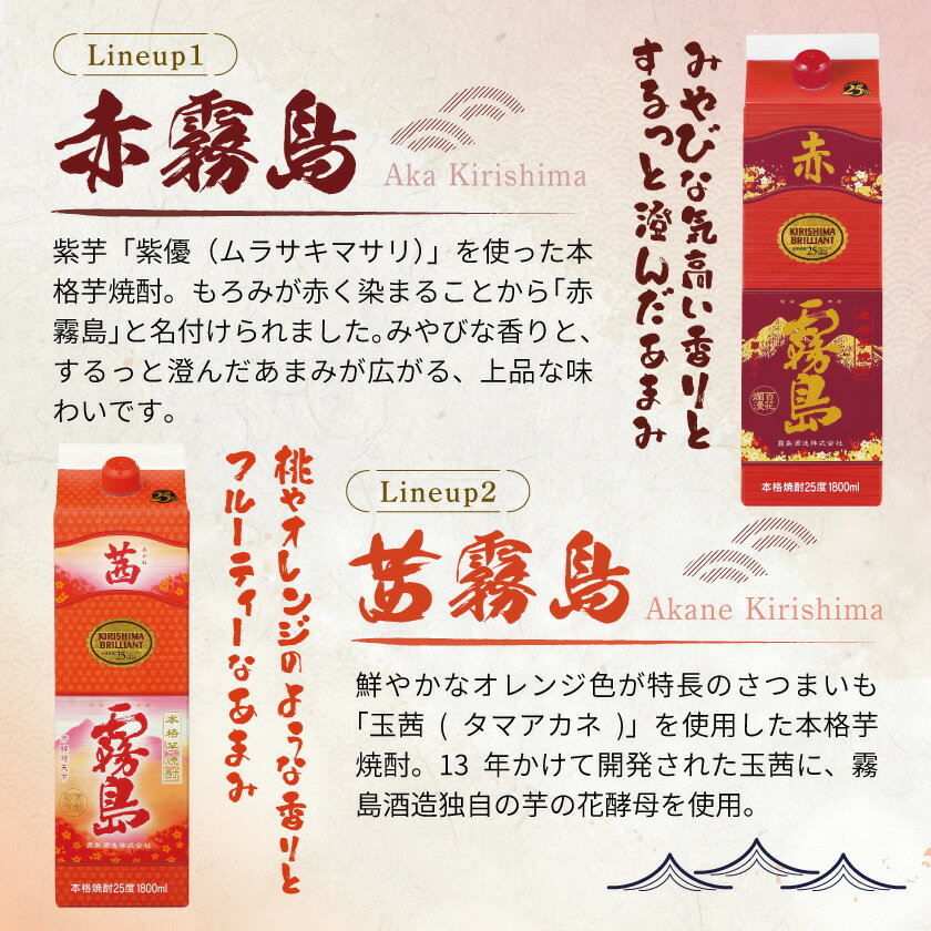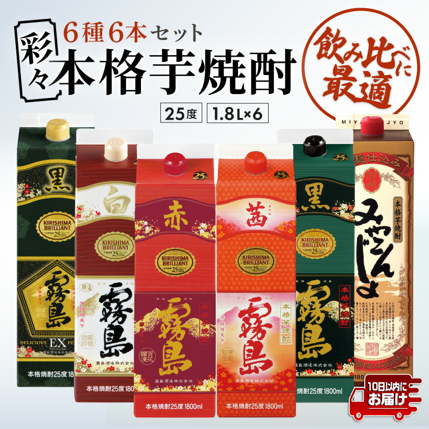 - 【ふるさと納税】彩々本格芋焼酎 25度1.8Lパック 6種6本セット≪みやこんじょ特急便≫ - 赤霧島 茜霧島 黒霧島EX 黒霧島 白霧島 みやこんじょ黒 25度 各1.8L パック 霧島酒造 都城酒造 送料無料 AF-8203【宮崎県都城市は2年連続ふるさと納税日本一!】