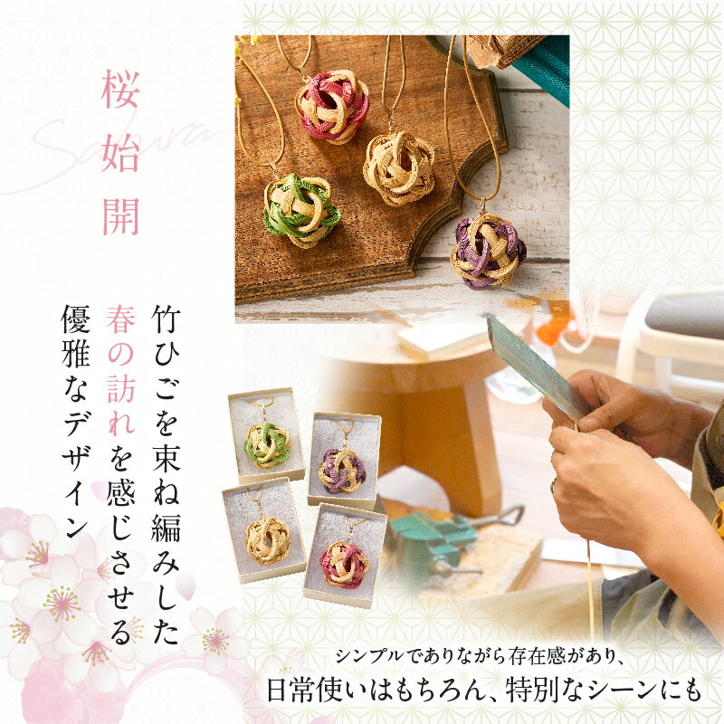 - 【ふるさと納税】≪選べるカラー≫ 別府 竹細工 アクセサリー 桜始開 ペンダント 日用品 雑貨 アイテム レディース 手作り ハンドメイド シンプル 特別 おしゃれ 種類 ピンク 緑 紫 自然 天然素材 20代 30代 40代 ギフト プレゼント 贈り物 おすすめ 大分県 送料無料
