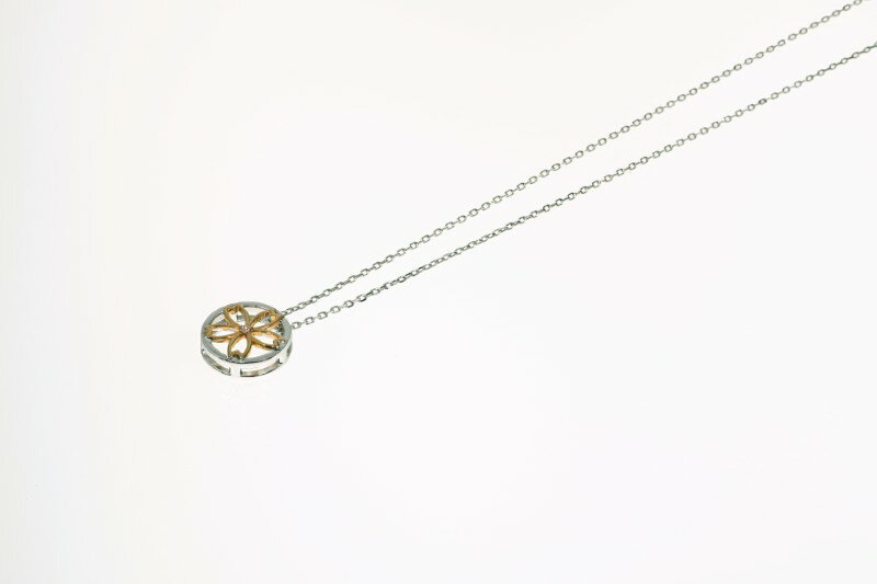 - 【ふるさと納税】< 甲府ジュエリー > ネックレス ペンダント ジュエリー アクセサリー レディース ダイヤモンド 約0.006ct Pt900/K18 Pt850 プラチナ18金 YG さくらモチーフ ジュエリーケース付 鑑別書付 保証書付 k358-011