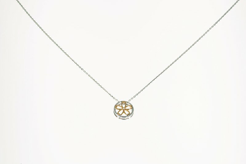 【ふるさと納税】< 甲府ジュエリー > ネックレス ペンダント ジュエリー アクセサリー レディース ダイヤモンド 約0.006ct Pt900/K18 Pt850 プラチナ18金 YG さくらモチーフ ジュエリーケース付 鑑別書付 保証書付 k358-011