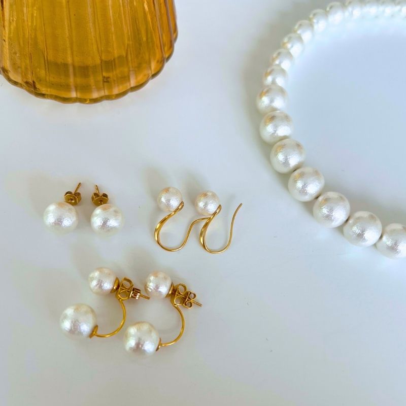 - 【ふるさと納税】コットンパール「ホワイト」シンプルショートネックレス(金具ゴールド)とピアス3点セット【〜en〜】|コットンパール ネックレス ピアス アクセサリー 入学式 卒業式 結婚式 ゴールド