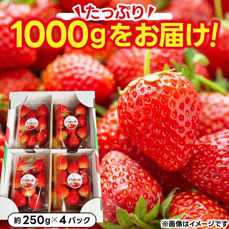 【ふるさと納税】【順次発送】栃木県産 とちあいか 合計1,000g (250g以上×4パック) 農家直送 家庭用 和饗エコファーム【栃木県共通返礼品/高根沢町産】|栃木県 ふるさと納税 いちご イチゴ 苺 果物 フルーツ とちあいか 大容量 熟成 (DW001)
