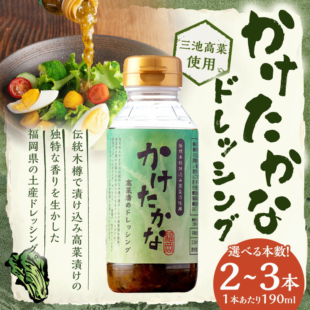 - 【ふるさと納税】<選べる本数>かけたかなドレッシング 1本190ml 2本セット / 3本セット 高菜漬け 三池高菜 ドレッシング 調味料 サラダ 豚肉 魚 豆腐 高菜パスタ 高菜チャーハン 福岡県産 国産 九州 福岡県 みやま市 送料無料 A332 A335