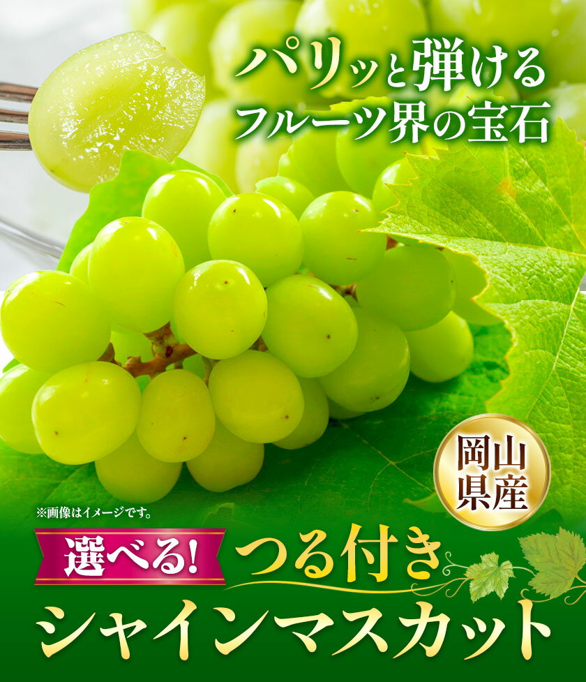 【ふるさと納税】【先行予約】岡山県産 選べる つる付き シャインマスカット 1房 (680g以上) 2房 (580g以上) 有限会社ホーティカルチャー神島《選択する栽培方法で出荷時期が異なります》岡山県 浅口市 マスカット ぶどう 葡萄 果物【配送不可地域あり】