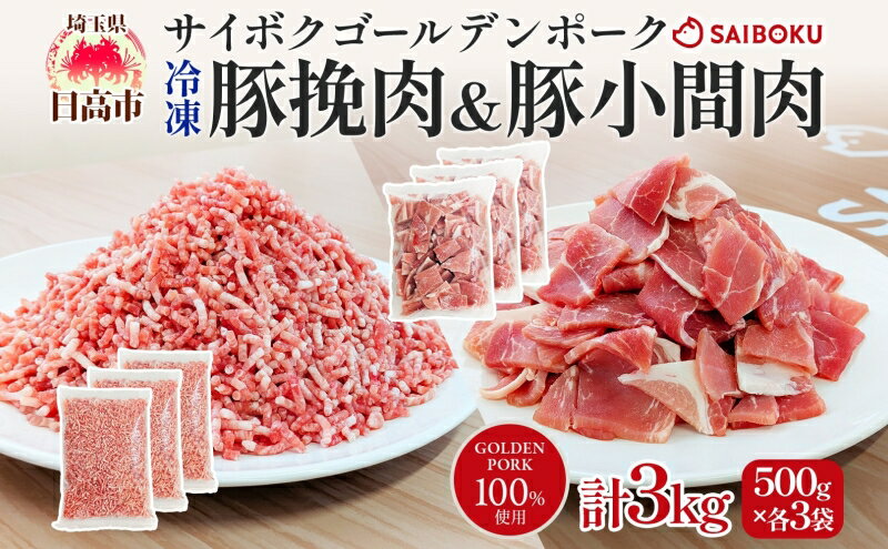 【ふるさと納税】サイボク 冷凍 ゴールデンポーク 挽肉 小間肉 3kg セット 各500g 3袋 銘柄豚 豚ひき肉 パラパラ 赤身 ジューシー こま切れ やわらか 炒め物 カレー 煮物 チャック付き ストック食材 餃子 そぼろ 冷凍保存 お取り寄せ 埼玉県 日高市