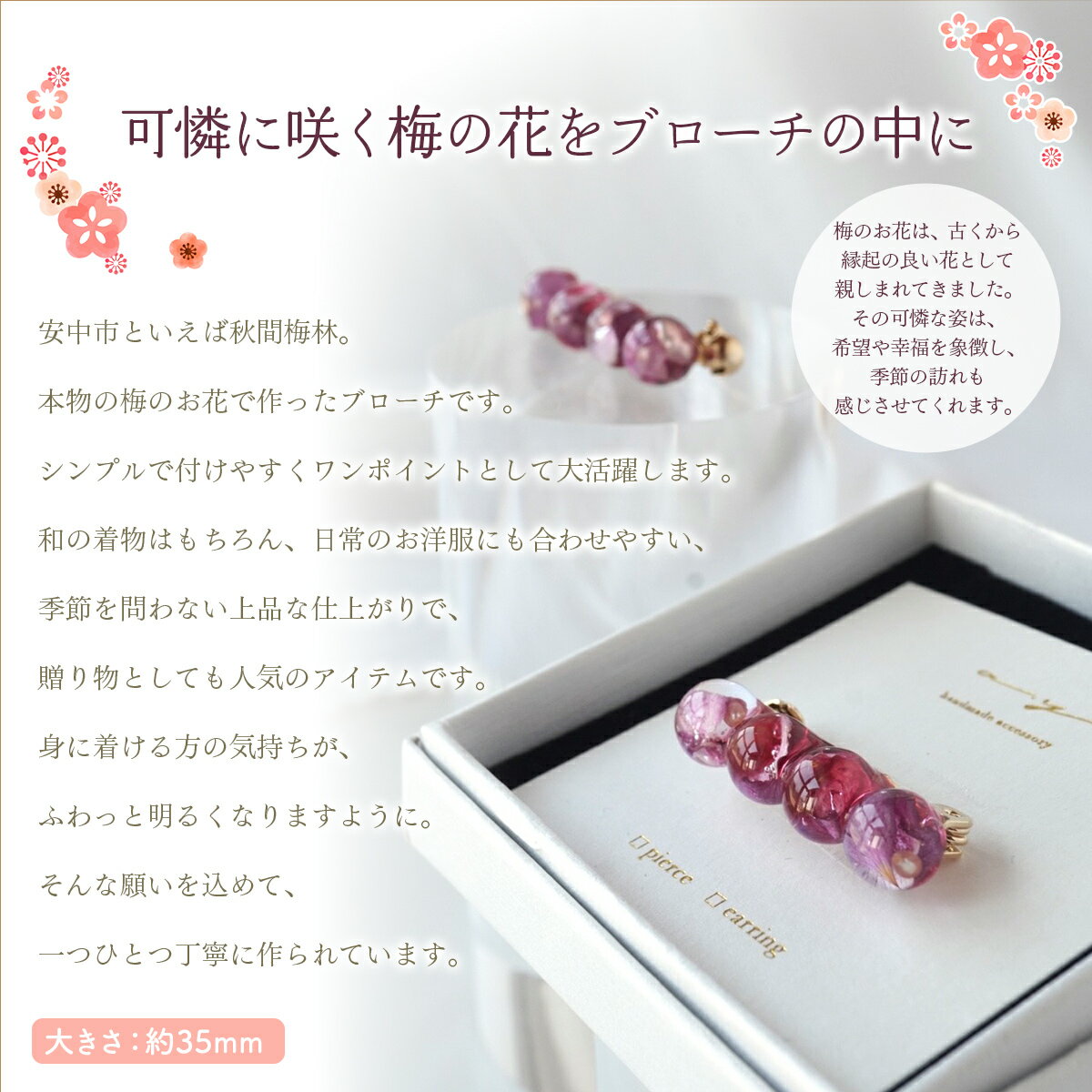 - 【ふるさと納税】秋間の梅のお花ブローチ 【 ふるさと納税 人気 おすすめ ランキング 雑貨 おしゃれ かわいい 梅 和 ギフト 贈り物 群馬県 安中市 送料無料 】ANBI001