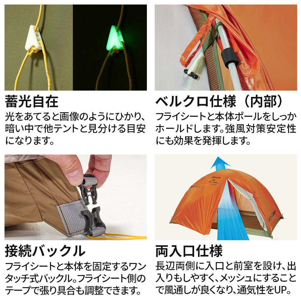 【ふるさと納税】DUNLOP 両入口 軽量 ダブルウォールテント 4シーズン対応【選べるサイズ:2人用/3人用・選べるカラー:オレンジ/オリーブ】[DL-20 4S・DL-30A 4S]テント用品 アウトドア用品