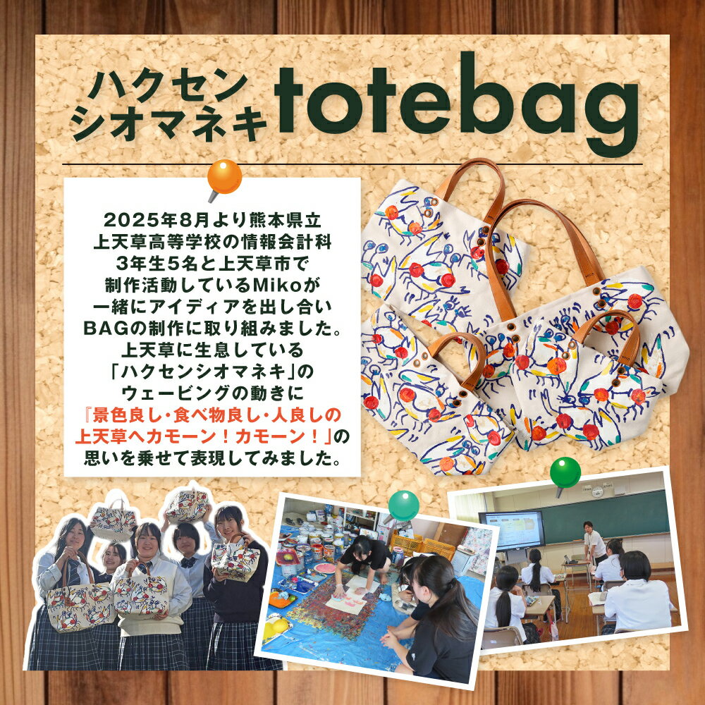 - 【ふるさと納税】【受注生産】上天草高校とのコラボ返礼品限定カラーハクセンシオマネキ totebag 【選べるサイズ】S・SM・M・Lサイズ バッグ トートバッグ トート 鞄 かばん カバン 手提げバッグ 手提げ Miko オリジナルブランド 送料無料