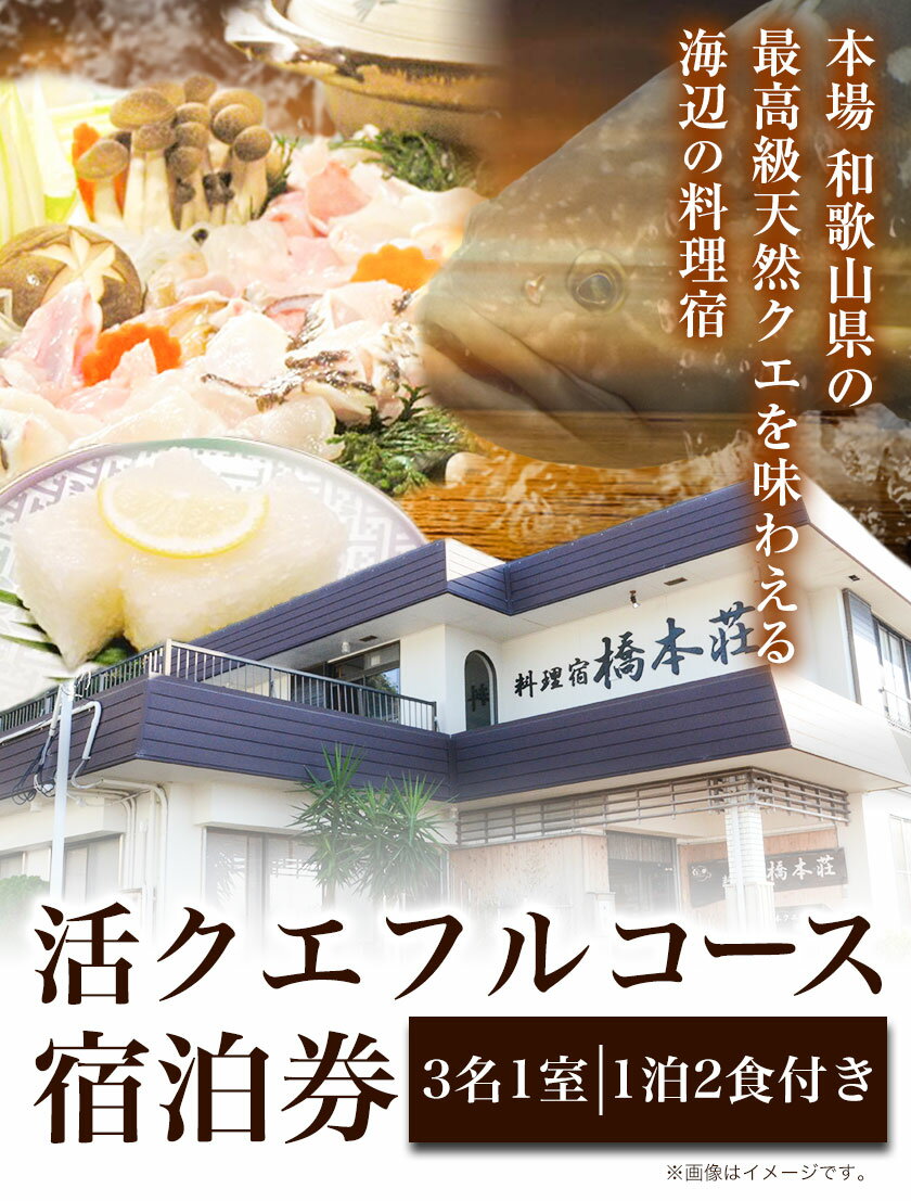 【ふるさと納税】活クエフルコース宿泊券(3名1室)(1泊2食付き) 料理宿橋本荘 《30日以内に出荷予定(土日祝除く)》和歌山県 日高町 宿 旅行 宿泊 クエ 料理 宿泊券 フルコース コース料理 魚