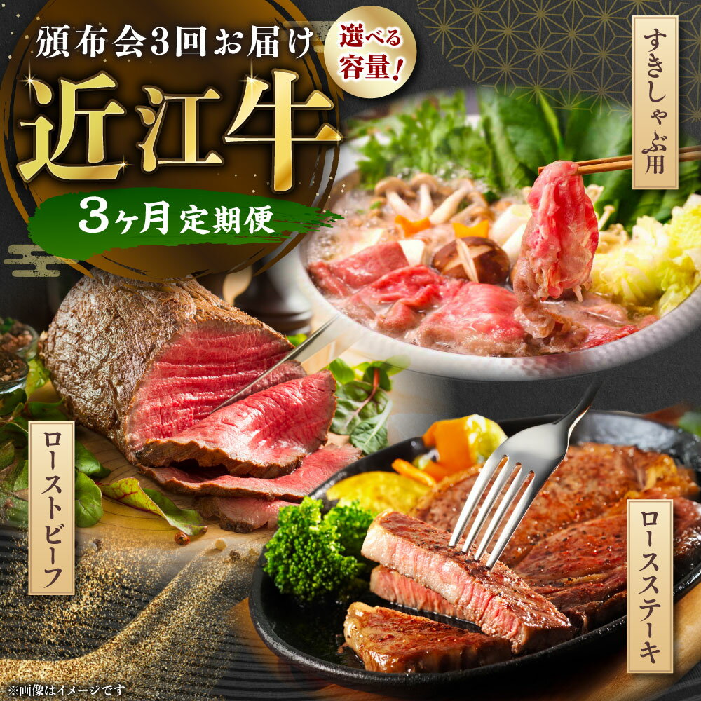 【ふるさと納税】<選べる内容量>【定期便】近江牛頒布会3回お届け すきしゃぶ用(約500g / 約1kg)・ローストビーフ(2個 / 4個)・ロースステーキ(2枚 / 4枚) 【近江牛専門店かねきち】 近江牛 牛肉 お肉 すき焼き しゃぶしゃぶ 冷凍 滋賀県 湖南市 送料無料
