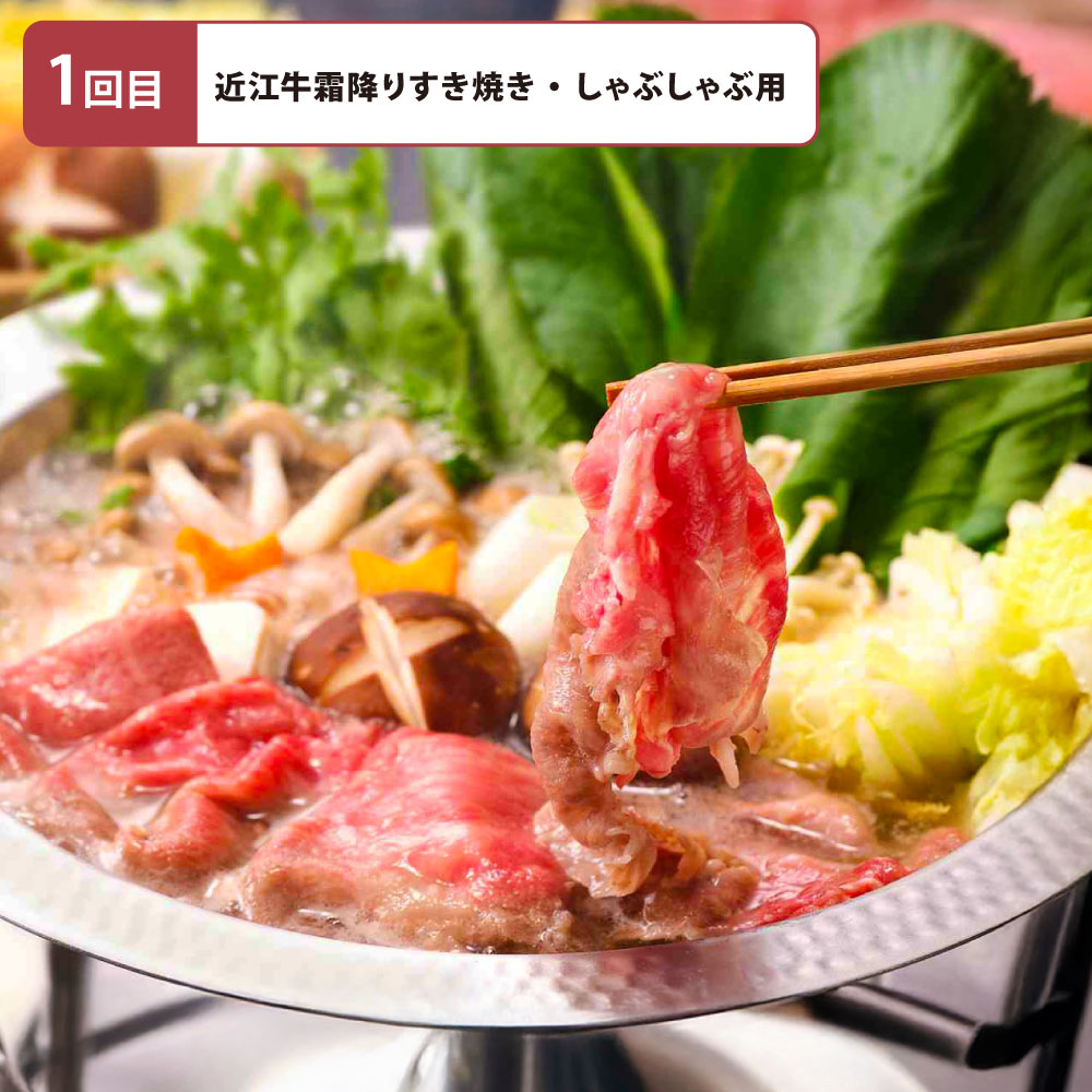 - 【ふるさと納税】<選べる内容量>【定期便】近江牛頒布会3回お届け すきしゃぶ用(約500g / 約1kg)・ローストビーフ(2個 / 4個)・ロースステーキ(2枚 / 4枚) 【近江牛専門店かねきち】 近江牛 牛肉 お肉 すき焼き しゃぶしゃぶ 冷凍 滋賀県 湖南市 送料無料