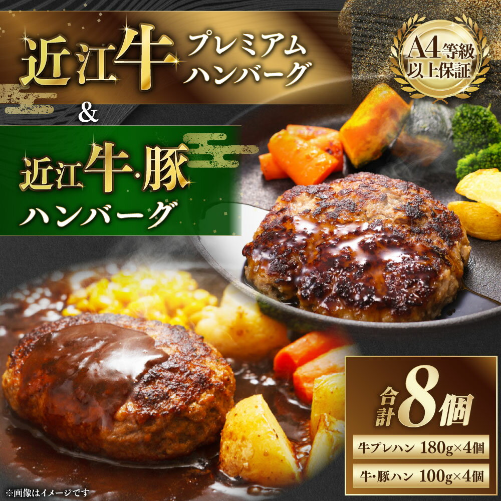 【ふるさと納税】近江牛 プレミアムハンバーグ + 近江牛&豚手ごねハンバーグ セット 合計8個(各4個) 合計1.12kg 牛肉 豚肉 お肉 赤身 ハンバーグ 惣菜 おかず ごはんのお供 ご飯のお供 冷凍 滋賀県 湖南市 送料無料
