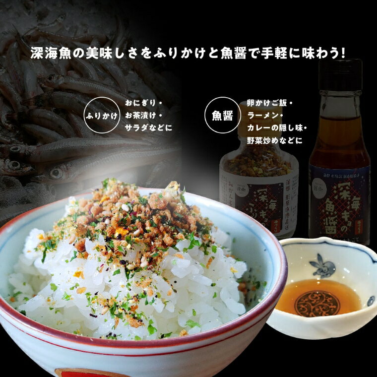 - 【ふるさと納税】G0718 形原漁港直送 深海からの贈物 深海ギョの魚醤とふりかけ 魚醤づくしセット 深海魚 ニギス メヒカリ みかん ふりかけ 魚醤 ご飯のお供 卵かけご飯のしょうゆ 発酵調味料 健康美食 減塩ふりかけ 保存料調味料着色料甘味料無添加