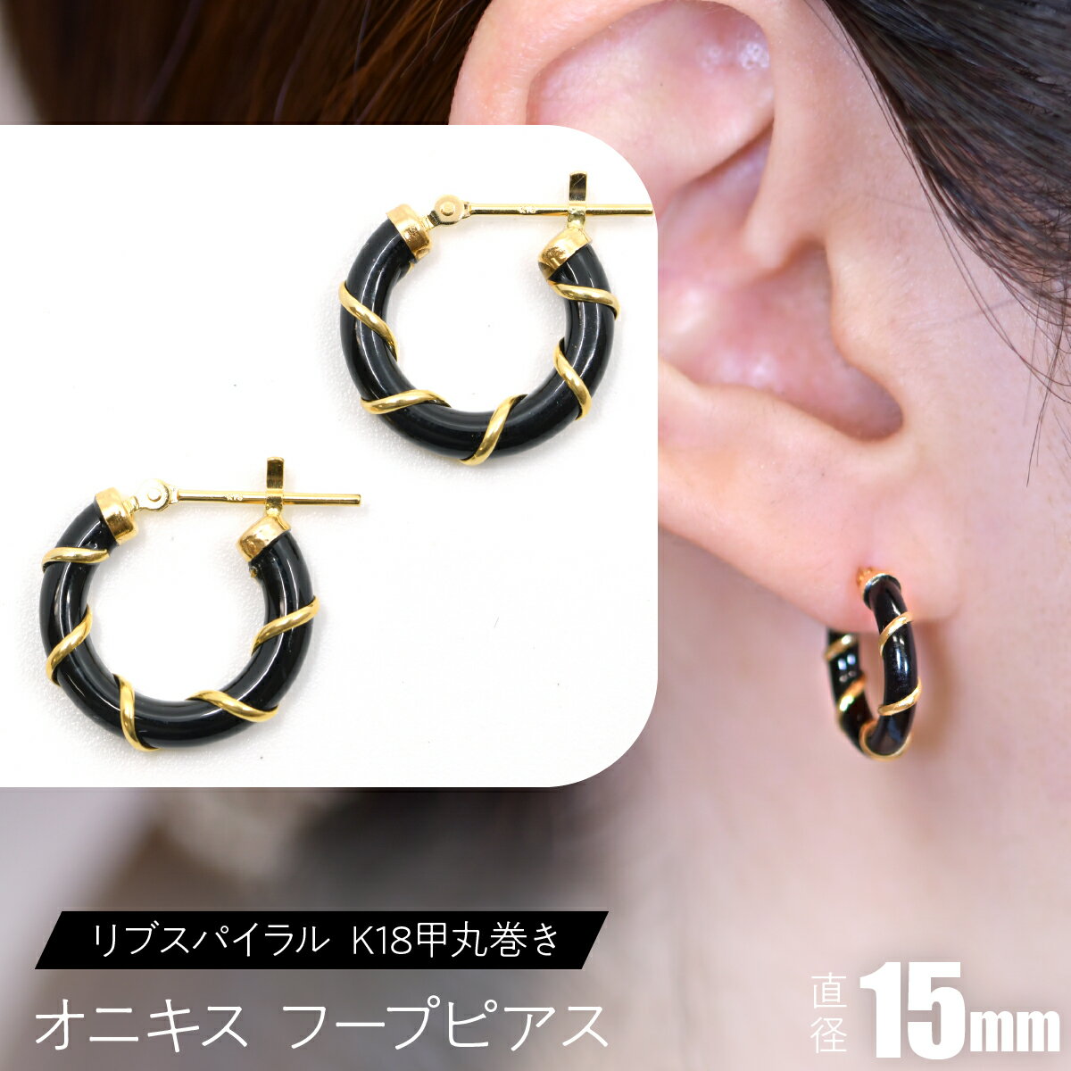 - 【ふるさと納税】オニキス フープピアス リブスパイラル (K18甲丸巻き) 【えらべるサイズ】SWCA006 ふるさと納税 K18 18金 フープピアス ピアス オニキス プレゼント ギフト 贈り物 山梨県 昭和町 送料無料