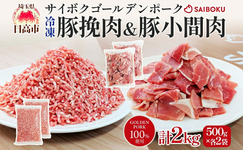 【ふるさと納税】サイボク 冷凍 ゴールデンポーク 挽肉 小間肉 2kg セット 各500g 2袋 銘柄豚 豚ひき肉 パラパラ 赤身 ジューシー こま切れ やわらか 炒め物 カレー 煮物 チャック付き ストック食材 餃子 そぼろ 冷凍保存 お取り寄せ 埼玉県 日高市