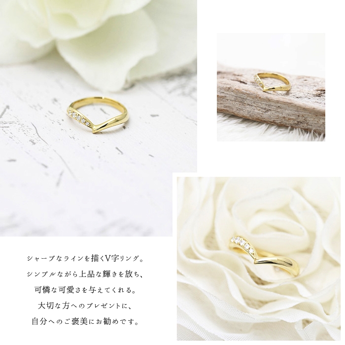 - 結婚指輪 K18YG イエローゴールド ダイヤモンド 0.07ct V字 レディースリング ハート ジュエリー マリッジリング 【293-k18yg】 ALPAZ159