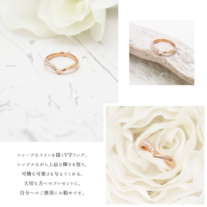 - 結婚指輪 K18PG ピンクゴールド ダイヤモンド 0.07ct V字 レディースリング ハート ジュエリー マリッジリング 【293-k18pg】 ALPAZ158