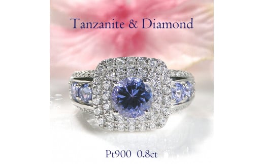 130-9-8 指輪 PT900 プラチナ 大粒タンザナイト ダイヤモンド 0.8ct 取り巻き スクエア リング【f241-pt】※14.5号 ALPAZ013-14_5