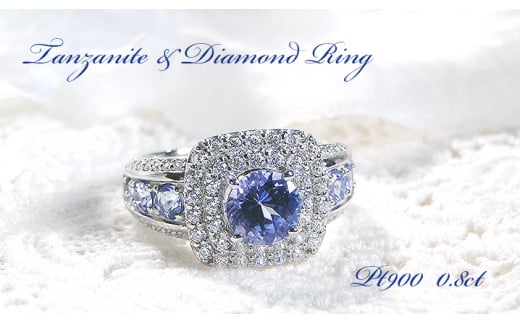 - 130-9-8 指輪 PT900 プラチナ 大粒タンザナイト ダイヤモンド 0.8ct 取り巻き スクエア リング【f241-pt】※14.5号 ALPAZ013-14_5
