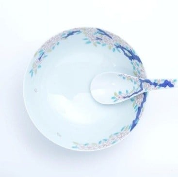 - 【セット】有田焼【錦右エ門窯】古木桜 ラーメン鉢・レンゲ セット