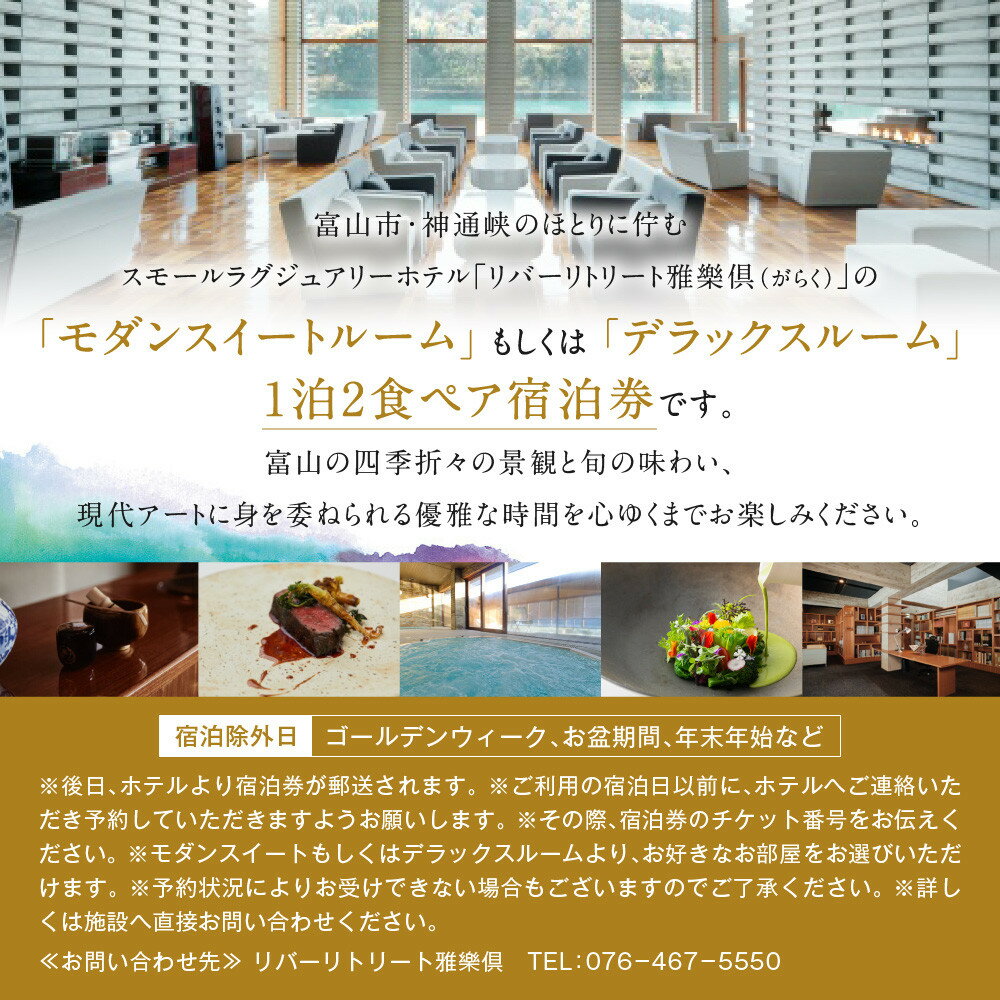 【ふるさと納税】【リバーリトリート雅樂倶】 モダンスイート、もしくはデラックスルーム 1泊2食ペア宿泊券 | 富山 北陸 ふるさと 納税 楽天ふるさと 支援 宿泊券 ご宿泊 宿泊 宿泊チケット 観光 ペアチケット ペア ペア宿泊券 旅行 贅沢 二人 旅館 ホテル お食事券 食事券