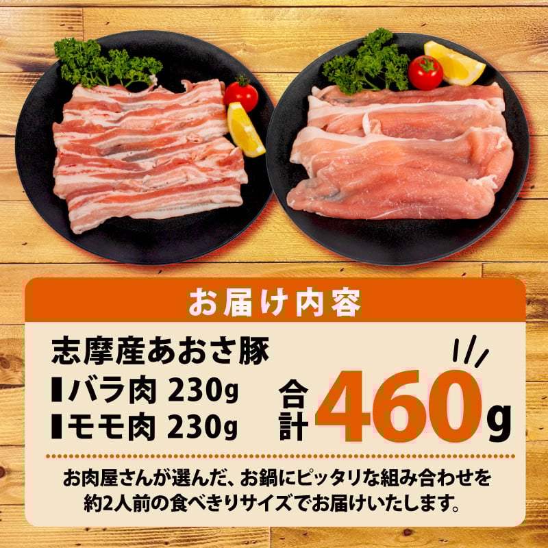 豚バラ・モモセット 合計 460g 2人前 / 鍋 国産 ブランド豚 志摩あおさ豚 豚肉 豚バラ モモ セット 食べ比べ 鍋 お試し 冷凍 小分け 便利 食べきり 伊勢 志摩 5000円 5千円 五千円
