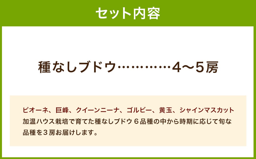 - 【先行予約】有機配合肥料使用 種なし 加温ハウスぶどう 4~5房 プレミアムセット 【2026年7月下旬より順次発送予定】 【春光園】 ぶどう ブドウ 葡萄 果物 フルーツ 詰め合わせ 福岡県 うきは市 冷蔵