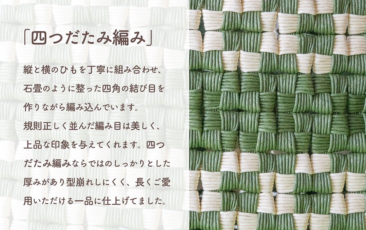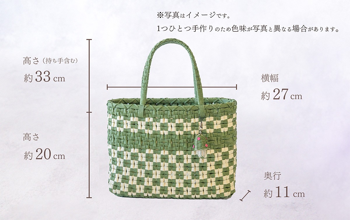 - 【一点物】 クラフトテープ かごバッグ(四つだたみ編み) モスグリーン【幅x高さ×奥行:約27cmx約20cmx約11cm】 母の日 手作りかご ハンドメイド バッグ クラフト 花結び 籠 市松編み マルシチ [DI003ya]