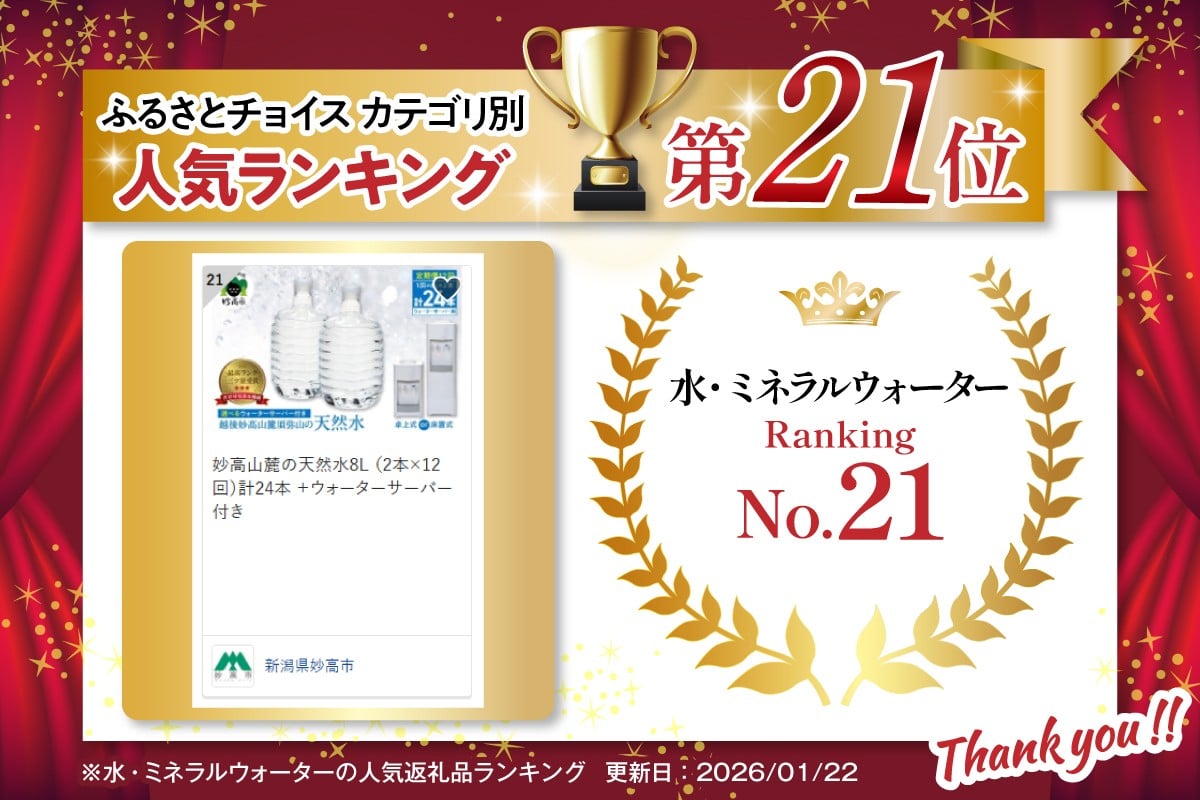 - 妙高山麓の天然水8L (2本×12回)計24本 +ウォーターサーバー付き