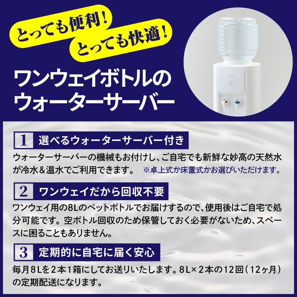 妙高山麓の天然水8L (2本×12回)計24本 +ウォーターサーバー付き
