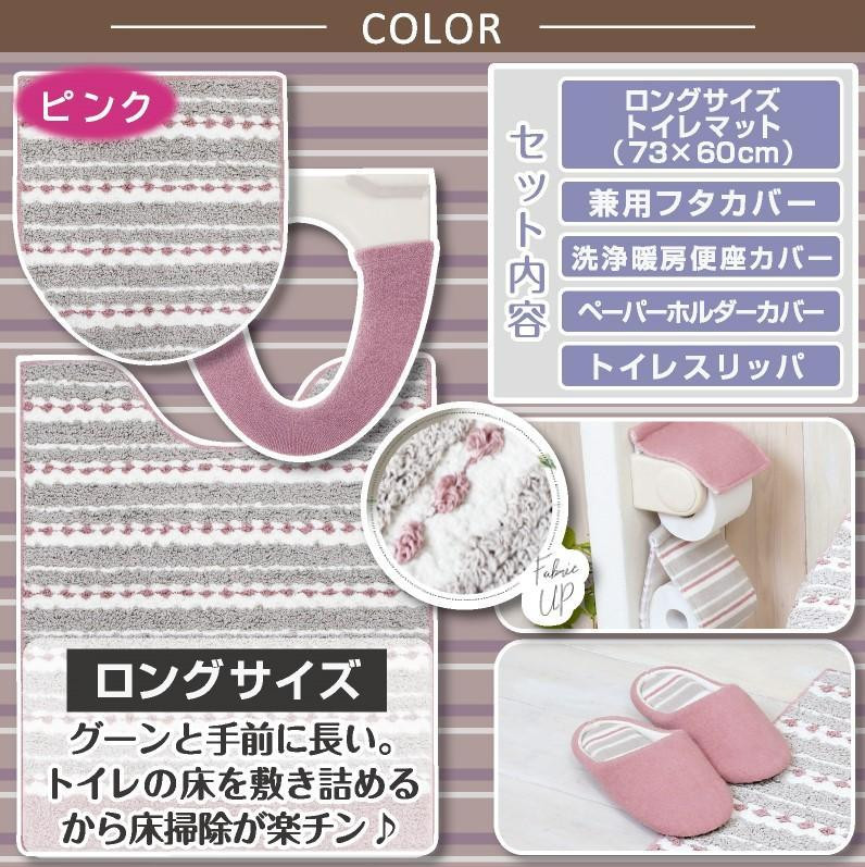 - ロングトイレ5点セット 洗浄タイプ ピンク 【トリコ】
