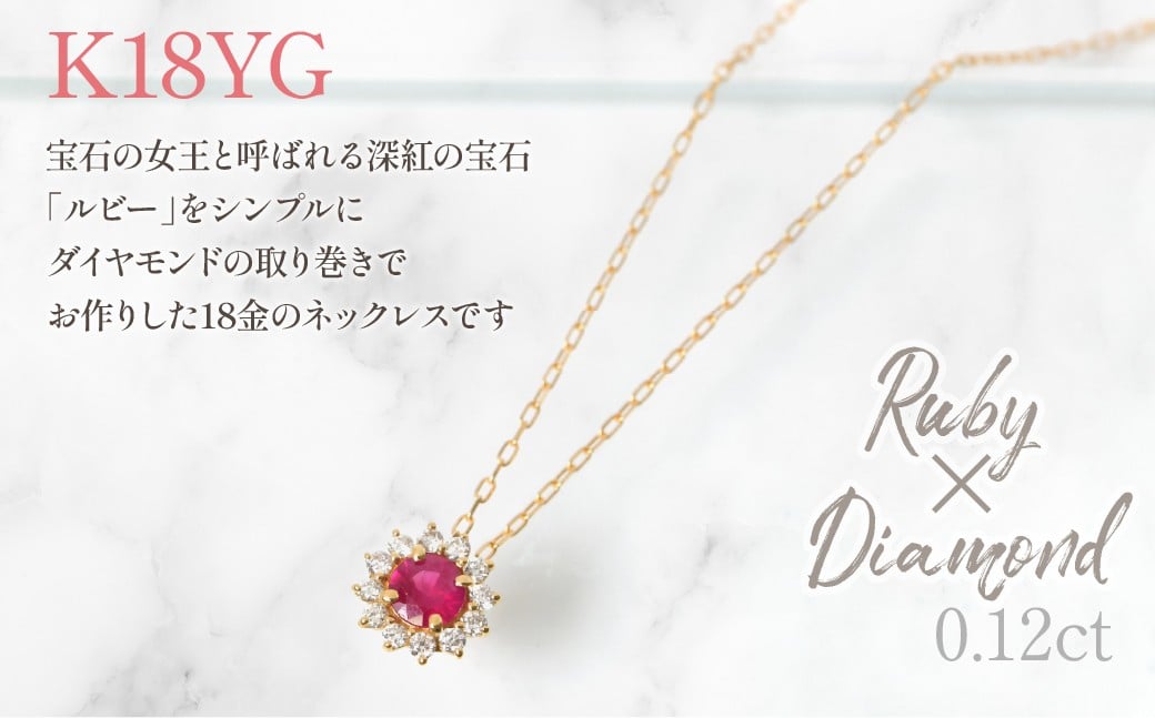 K18 イエローゴールド ルビーダイヤ取り巻きネックレス ラウンド 管理番号255299 218-258-ru