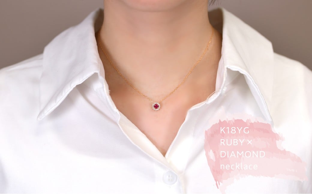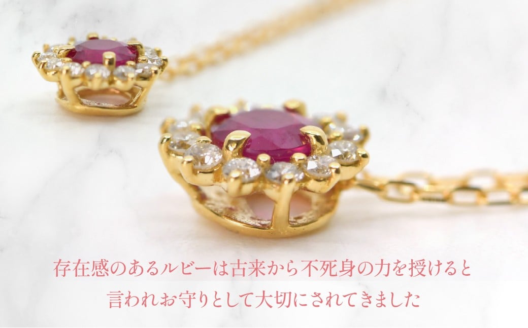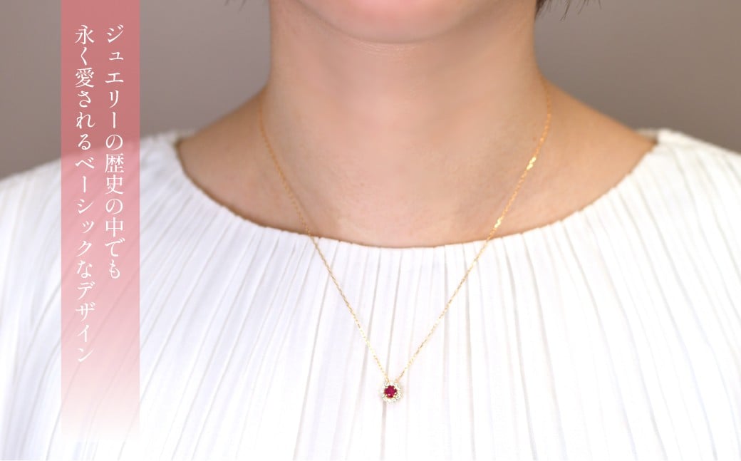 - K18 イエローゴールド ルビーダイヤ取り巻きネックレス ラウンド 管理番号255299 218-258-ru