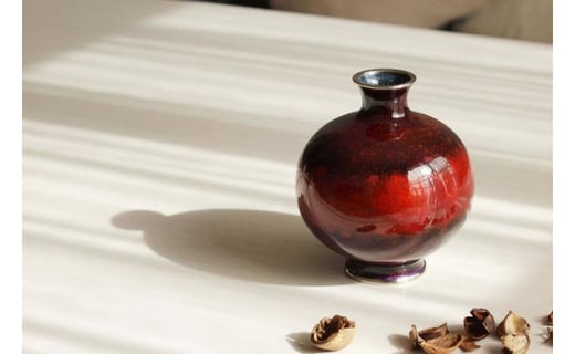 ★色3種★【尾張七宝窯元 加藤七宝製作所】4.5寸玉形花瓶 宙・水・陽(紺透け・緑透け・赤透け)