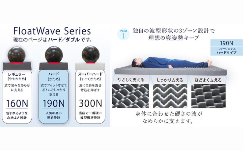 - アキレス 健康サポートマットレス FloatWave ハードタイプ D(ダブル) グレー×カーキ 3つ折り 日本製 190N かため 厚さ10cm【寝具・マットレス・高反発・三つ折り・硬め】