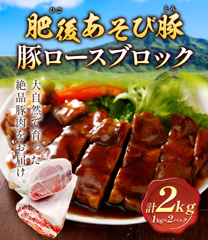 【ふるさと納税】肥後あそび豚 ロースブロック 1kg × 2パック 合計 2kg 《30日以内に出荷予定(土日祝除く)》熊本県 菊池市 ぶた ブタ 豚肉 肉 ブランド豚 ロース ブロック 国産 九州産 熊本県産 菊池市産 冷凍 送料無料