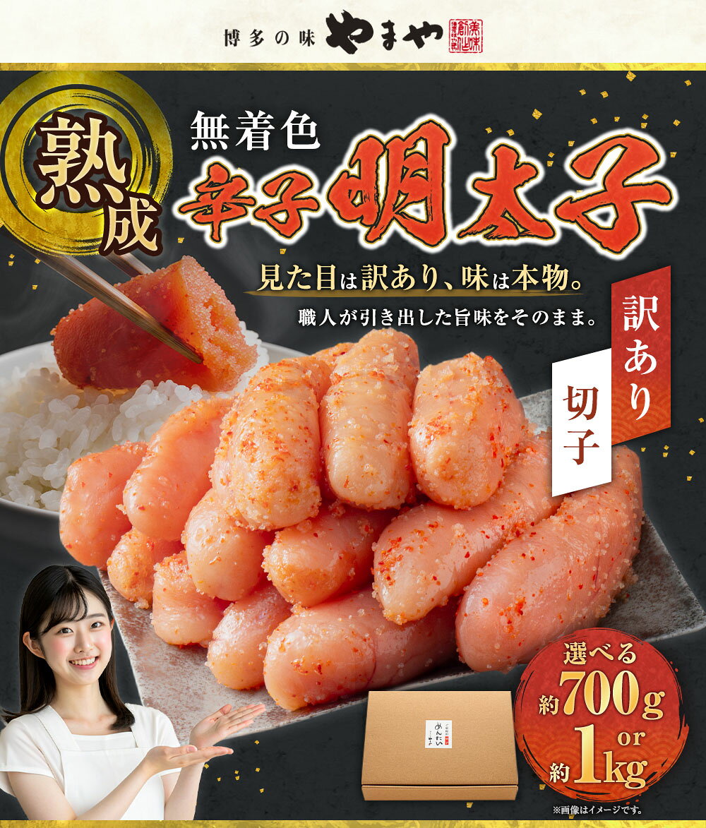 - 【ふるさと納税】【訳あり】熟成無着色辛子明太子 切子 ( 約700g / 約1kg ) 辛子明太子 辛子 明太子 めんたいこ 明太 魚卵 魚介類 ご飯のお供 おつまみ 切れ子 冷凍 福岡県 苅田町 送料無料【2026年2月下旬より順次発送予定】