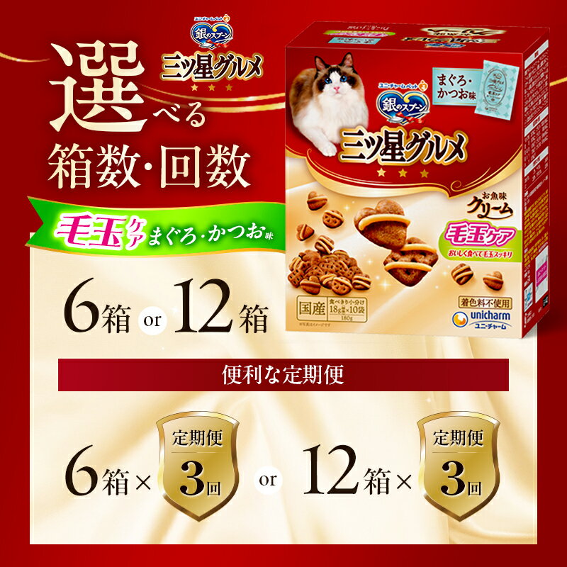 - 【ふるさと納税】銀のスプーン三ツ星グルメ お魚クリーム 毛玉ケア まぐろ・かつお味 180g 選べる箱数・回数(6箱/12箱/1回/3回定期便) ペットフード キャットフード 猫のごはん 猫用フード 猫 ペット 小分け 個包装 ドライ ユニ・チャーム ペット