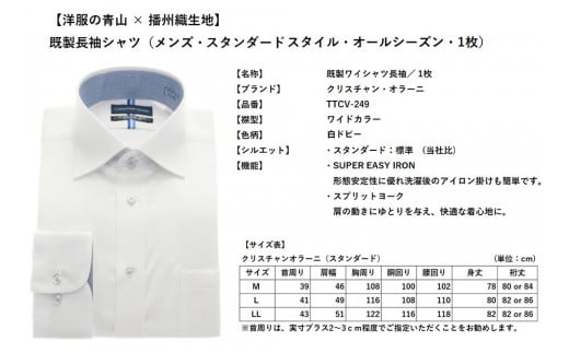 - 洋服の青山シャツ×播州織(メンズ・フォーマルスタンダード・1着)④TTCV-249オラーニシャツ 15-13-④ LL(首回り43)- 袖丈82