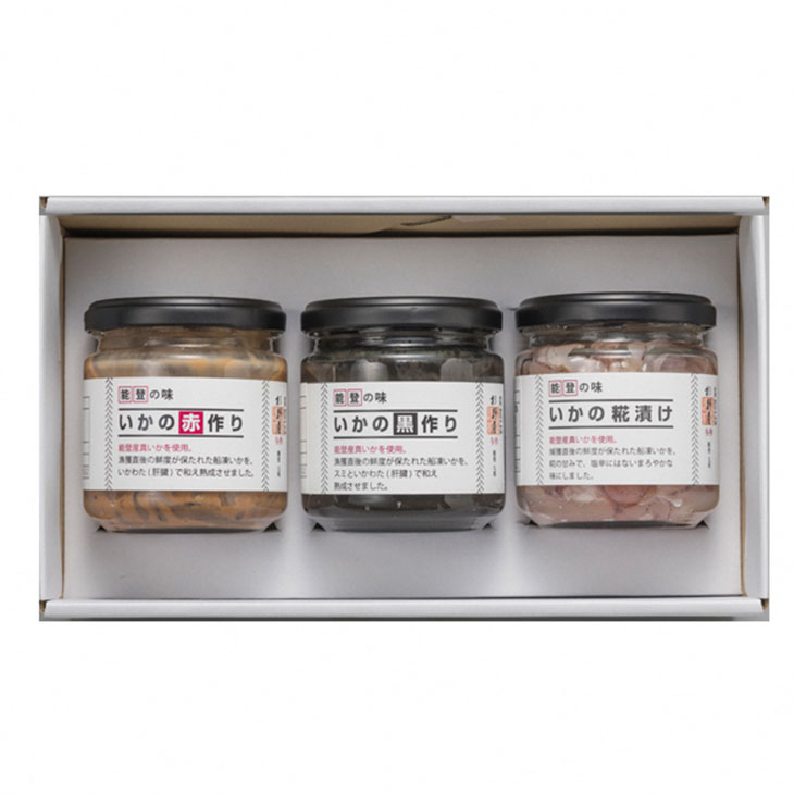 - 能登の塩辛三種セット 汐の香り<舞>(赤づくり・黒づくり・糀漬け)[ヨシマイ] | いか イカ 糀 魚貝類 魚介類 水産加工品 海鮮 シーフード おつまみ 珍味 詰め合わせ 贈答 震災復興 復興支援 石川県 七尾市 能登