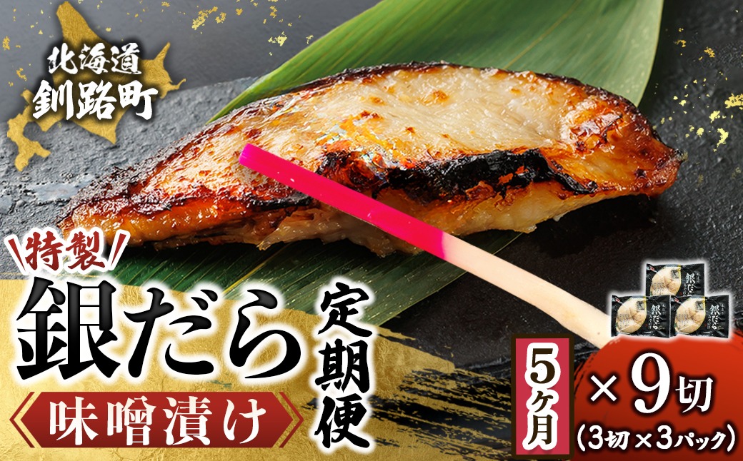 【定期便 5ヶ月連続】特製 銀だら味噌漬け (3切× 3個セット) 小分け 西京漬け ではなく独自に調合した 特製味噌 による 味噌漬け 銀鱈 ギンダラ ぎんだら 漬魚 味噌 味噌漬け 厚切り 冷凍 魚介類 海鮮 絶品 人気 笹谷商店 直営 釧之助本店 せんのすけ 高級 海鮮定期便 定期便 5ヶ月 5回 10万ほど 10万以下 北海道 釧路町 釧路超 特産品 br04 121-1920-461-324