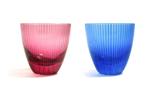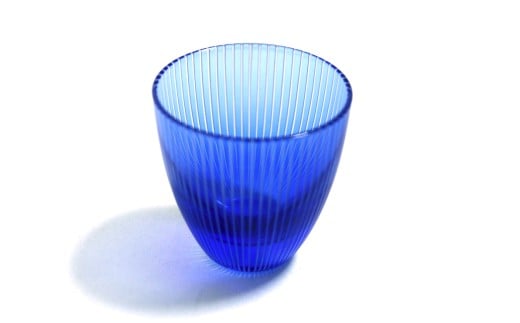 - 浅草切子 KANA KURITA「ぐい呑 千筋 青藍/金赤<艶消し>」ペアセット 木箱入り| 切子 花切子 切子ガラス ガラス工芸 グラス ガラス コップ 手作り ぐい呑み 家飲み 酒器 ハンドメイド 手作り ギフト 贈答 プレゼント