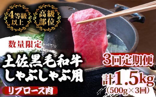 - 【定期便3回】土佐 黒毛 和牛 しゃぶしゃぶ用 計1.5kg(500g×3ヶ月連続お届け)3Wコース| 特撰 リブロース肉 最上位等級 A4 A5 最高ランク 贅沢 しゃぶしゃぶ 鍋 スライス 焼肉用 小分け 冷凍 国産 牛肉 高知県 須崎 TM77000