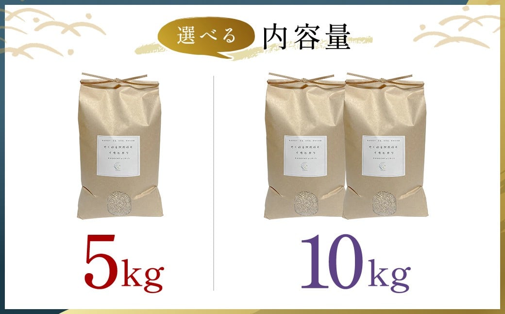 - 令和8年産先行予約 やくの自然栽培米 イセヒカリ (選べる精米方法・内容量:玄米・7分づき・白米 / 5kg・10kg ) / 自然栽培米 自然栽培 こめ コメ 米 玄米 7分づき 白米 精米 イセヒカリ いせひかり お米 ごはん やくの 夜久野 京都府 福知山市 FCEV003-v