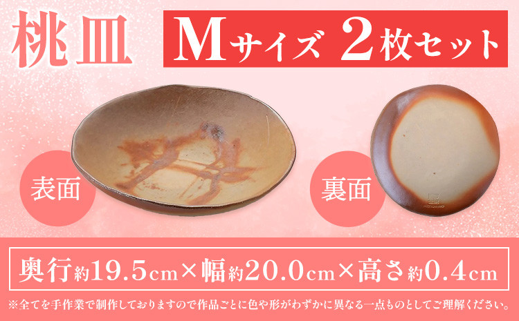 - 桃皿 Mサイズ 2枚 皿 亜登武窯《90日以内に出荷予定(土日祝除く)》岡山県 浅口市 食器 備前焼 電子レンジ使用可 オーブン使用可 送料無料 st-p