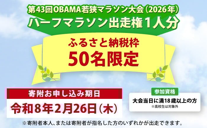 - 第43回OBAMA 若狭マラソン大会(2026年)ハーフマラソン出走権(1人分) 小浜市 / OBAMA若狭マラソン大会運営委員会 [BFDL001]