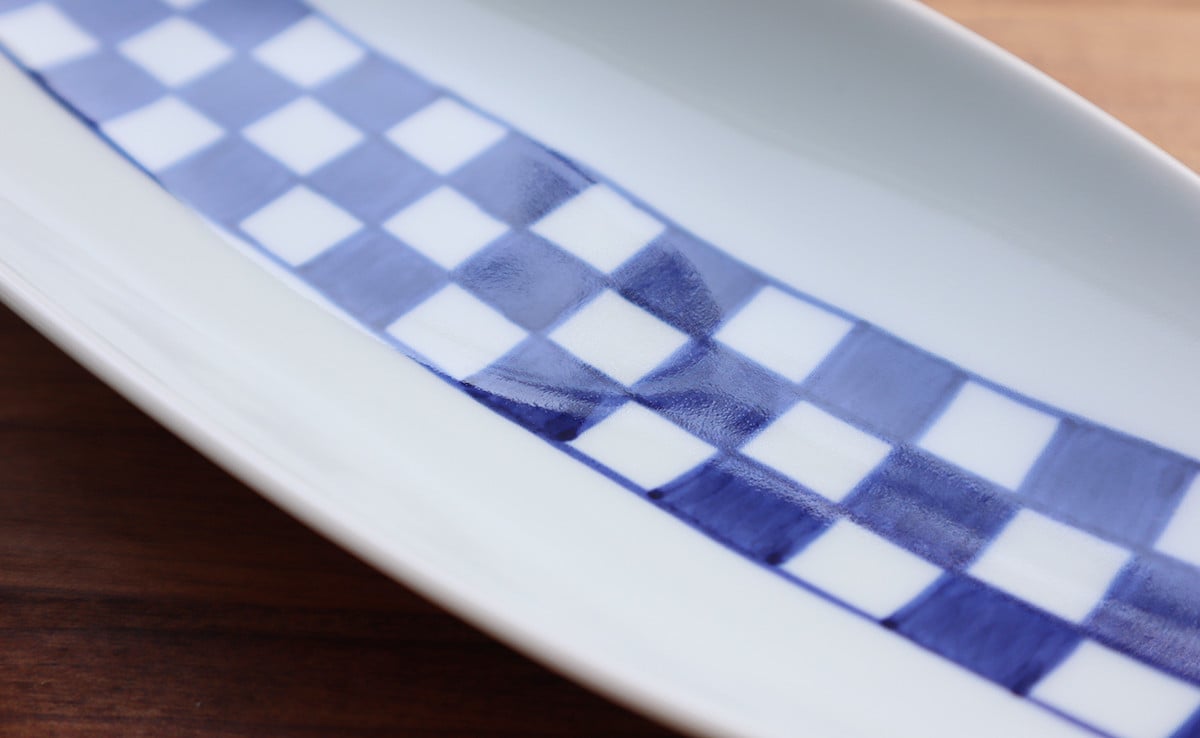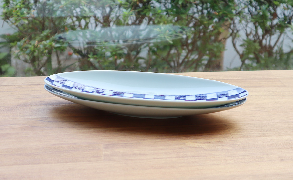 - 『アウトレット』有田焼 楕円皿市松 2枚セット【まるふく】染付け 市松 青 楕円 食器 うつわ 器 訳アリ 数量限定 アウトレット A18-273